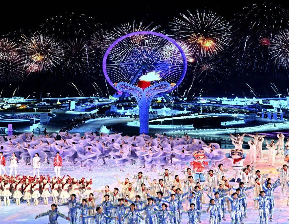 2月7日,第九届亚洲冬季运动会开幕式在哈尔滨举行。图为演员在开幕式上表演。新华社记者 燕雁 摄