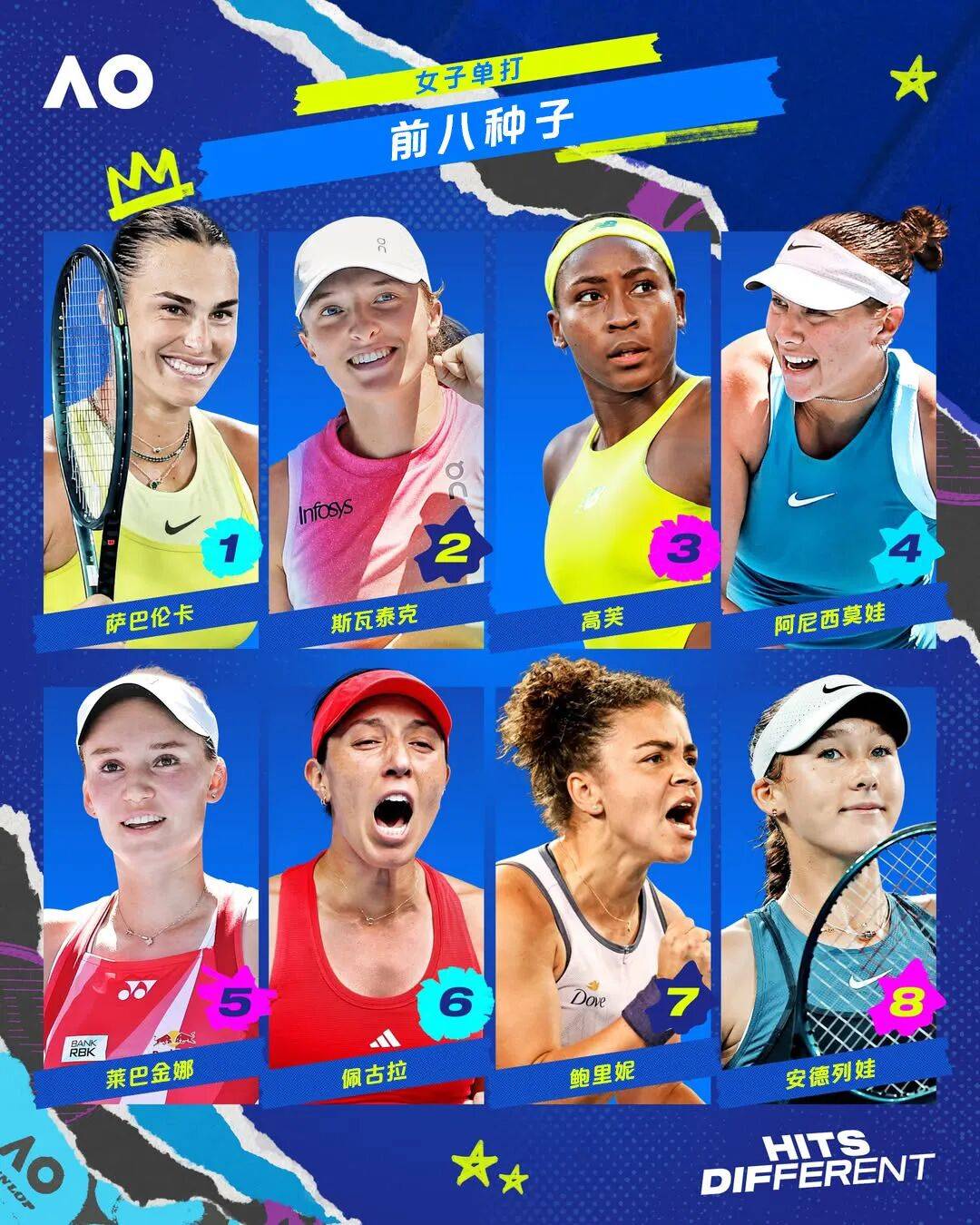 女单前八种子对位:萨巴伦卡VS保利尼、高芙VS安德列娃、阿尼西莫娃VS佩古拉、斯瓦泰克VS莱巴金娜